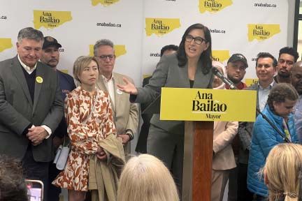 Com respeito à sua candidatura e empenho em levá-la até ao fim, no que se prevê ser uma eleição muito concorrida, já com mais de três dezenas de pretendentes ao cargo de presidente da Câmara, Ana Bailão é peremptória: "as pessoas reconhecem a forma como faço política com seriedade. Conhecem o meu dinamismo e o meu empenho quando me comprometo". "Sabem que tenho a experiência do meu lado, pois desenganem-se aqueles que acham que é chegar à Câmara e fazer tudo de um dia para o outro. É preciso, e lembro isso, trabalhar com os 25 vereadores, sendo que o presidente da Câmara tem direito a apenas um voto. É preciso ter boas relações, é preciso conhecer o trabalho e o meu plano é claro: melhorar os serviços, criar habitação e uma nova vida", afirmou. Presentes na abertura do escritório de campanha da candidata luso-canadiana encontravam-se vários elementos da comunidade lusa, muitos dos quais expressaram o seu desejo de iniciar as celebrações dos 70 anos de imigração oficial portuguesa para o Canadá no dia 13 de Maio e só terminar no dia 26 de Junho com o que esperam seja a eleição histórica da candidata de ascendência lusitana. Para isso, vai necessitar do apoio e colaboração de todos os sectores e etnias que compõem a sociedade torontina em geral, o que não lhe parece faltar tendo em conta a grande diversidade de apoiantes que compareceram à inauguração. Caso seja eleita, Ana Bailão será não só a primeira portuguesa mas também a primeira mulher – após a amalgamação que em 1998 criou a megacidade – a ocupar a cadeira de presidente de Câmara de Toronto, a maior e mais populosa metrópole canadiana e capital da província do Ontário. | ||||||