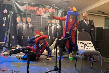Também do CCPM, Os Rapazes do Centro Cultural Português de Mississauga foram os quintos a actuar, satirizando e levando às lágrimas – mas de gargalhadas – o público que assistia na Casa dos Açores do Ontário, abordando a realidade de muitos idosos colocados em "residências para a terceira idade". Os últimos a subir ao palco foram os elementos da Dança dos Amigos das Tradições Terceirenses que "brincaram" acerca das ganadarias terceirenses que existem em terras canadianas, dizendo quererem, no final de contas, realizar uma tourada à moda dessa ilha, mas que cá "falta quase tudo". Certo é que, no final da noite, satisfação era a palavra que melhor descrevia o sentimento de todos, quer dos que ali foram assistir, quer da organização: as danças e os bailinhos de Carnaval, neste caso de Páscoa, estavam de regresso aos palcos luso-canadianos depois da longa paragem forçada devido à covid-19, anos que foram vividos com tristeza pela ausência destes espectáculos de teatro popular. Cá, como lá, as danças terceirenses "são feitas pelo povo e para o povo" e, pelo que se verificou, têm continuidade assegurada. | ||||||||||