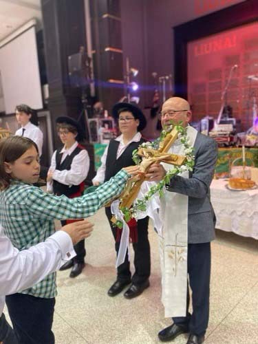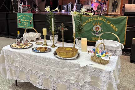 A tarde foi recheada de animação, com os bombos da ACMT a abrirem o festejo pascal, seguidos das actuações dos ranchos folclóricos do Centro Cultural Português de Mississauga, convidado a participar no convívio, bem como do da própria colectividade. A gastronomia minhota esteve, naturalmente, em evidência, dando destaque ao cabrito e ao pão-de-ló, ambos muito característicos daquela região de Portugal, a par doutras iguarias que foram distribuídas pelas mesas. O momento alto do evento estava destinado a ser a tradição do beijar da Cruz, ocasião em que o padre André fez questão de passar em todas as mesas, recriando – como destacou a relações públicas da ACMT – em terras canadianas as tradicionais visitas pascais características do norte de Portugal. | ||||||||||||||