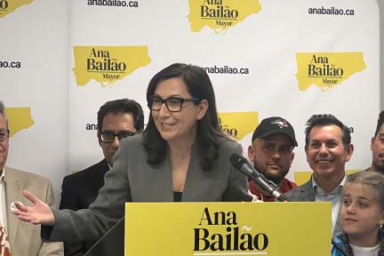 Com respeito à sua candidatura e empenho em levá-la até ao fim, no que se prevê ser uma eleição muito concorrida, já com mais de três dezenas de pretendentes ao cargo de presidente da Câmara, Ana Bailão é peremptória: "as pessoas reconhecem a forma como faço política com seriedade. Conhecem o meu dinamismo e o meu empenho quando me comprometo". "Sabem que tenho a experiência do meu lado, pois desenganem-se aqueles que acham que é chegar à Câmara e fazer tudo de um dia para o outro. É preciso, e lembro isso, trabalhar com os 25 vereadores, sendo que o presidente da Câmara tem direito a apenas um voto. É preciso ter boas relações, é preciso conhecer o trabalho e o meu plano é claro: melhorar os serviços, criar habitação e uma nova vida", afirmou. Presentes na abertura do escritório de campanha da candidata luso-canadiana encontravam-se vários elementos da comunidade lusa, muitos dos quais expressaram o seu desejo de iniciar as celebrações dos 70 anos de imigração oficial portuguesa para o Canadá no dia 13 de Maio e só terminar no dia 26 de Junho com o que esperam seja a eleição histórica da candidata de ascendência lusitana. Para isso, vai necessitar do apoio e colaboração de todos os sectores e etnias que compõem a sociedade torontina em geral, o que não lhe parece faltar tendo em conta a grande diversidade de apoiantes que compareceram à inauguração. Caso seja eleita, Ana Bailão será não só a primeira portuguesa mas também a primeira mulher – após a amalgamação que em 1998 criou a megacidade – a ocupar a cadeira de presidente de Câmara de Toronto, a maior e mais populosa metrópole canadiana e capital da província do Ontário. | ||||||